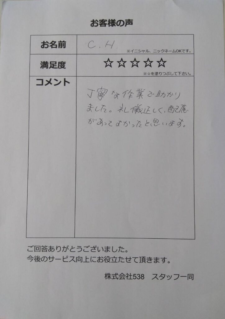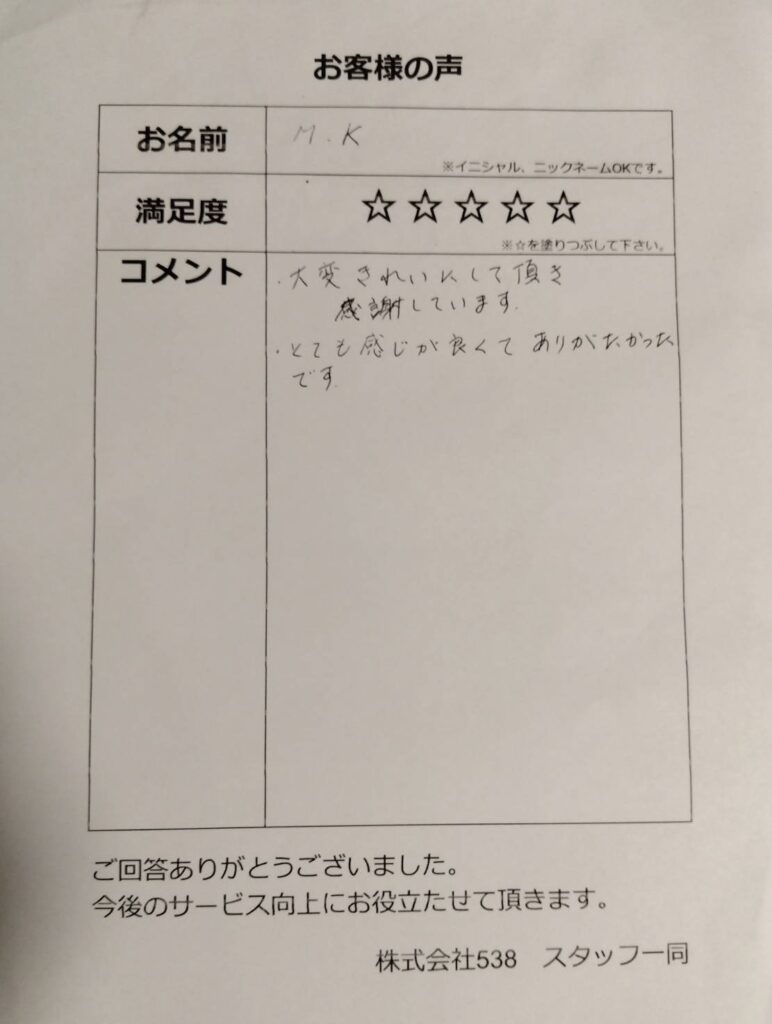お客様にお書き頂いたお客様の声・口コミです。