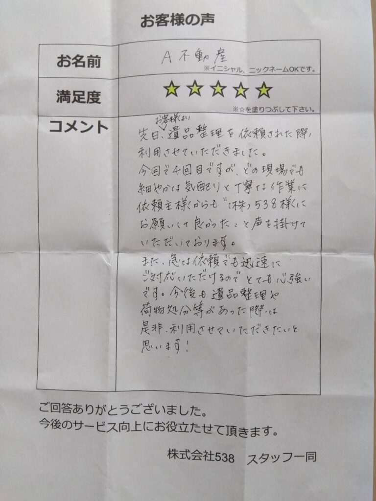 株式会社538は東京都足立区にあるプロのお片付け屋です。